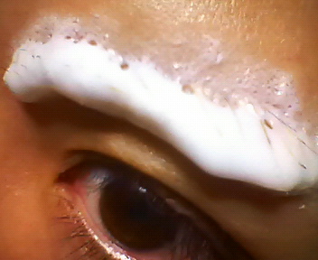目の上に繭が。
